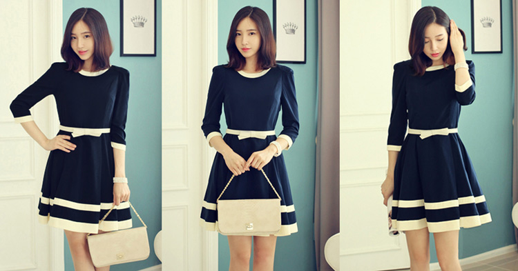 - Kiểu dáng: Đầm xòe phối màu, tay lửng